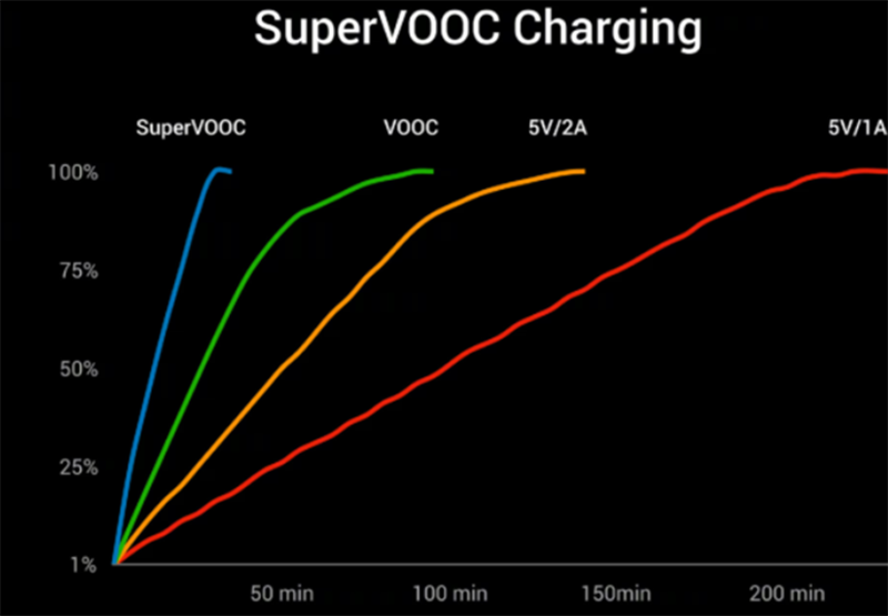 Tuy nhiên, Super VOOC có thể giữ nhiệt độ thấp hơn trong khi vẫn duy trì sạc nhanh với cùng tốc độ mà không phụ thuộc vào việc người dùng đang sử dụng smartphone của mình cho những hoạt động gì.